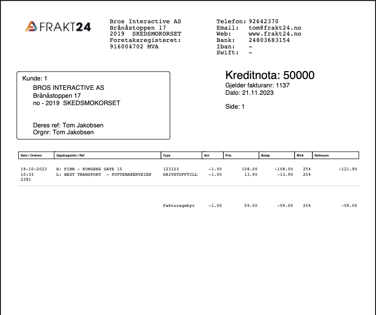 release Ny kreditnota modul i Frakt24 08.jan.2024 13:13:41 Kreditnota har blitt oppdatert og gjør nå kreditering av hele eller deler av en faktura enklere og m... Les mer
